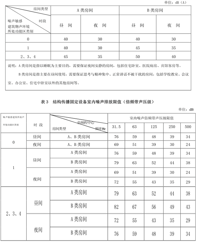 表2 結(jié)構傳播固定設備室內(nèi)噪聲排放限值(等效聲級)