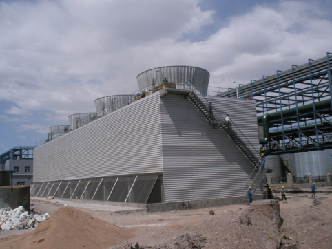 一般來說,冷卻塔使用水循環(huán)來作為冷卻介質(zhì),它的作用是通過將熱吸收到水中,然后排放到空氣中以降低水的溫度。該裝置使用了水與空氣的流動接觸,利用冷卻劑的冷熱交換,產(chǎn)生蒸汽并帶走熱量。這樣,通過蒸發(fā)散熱、